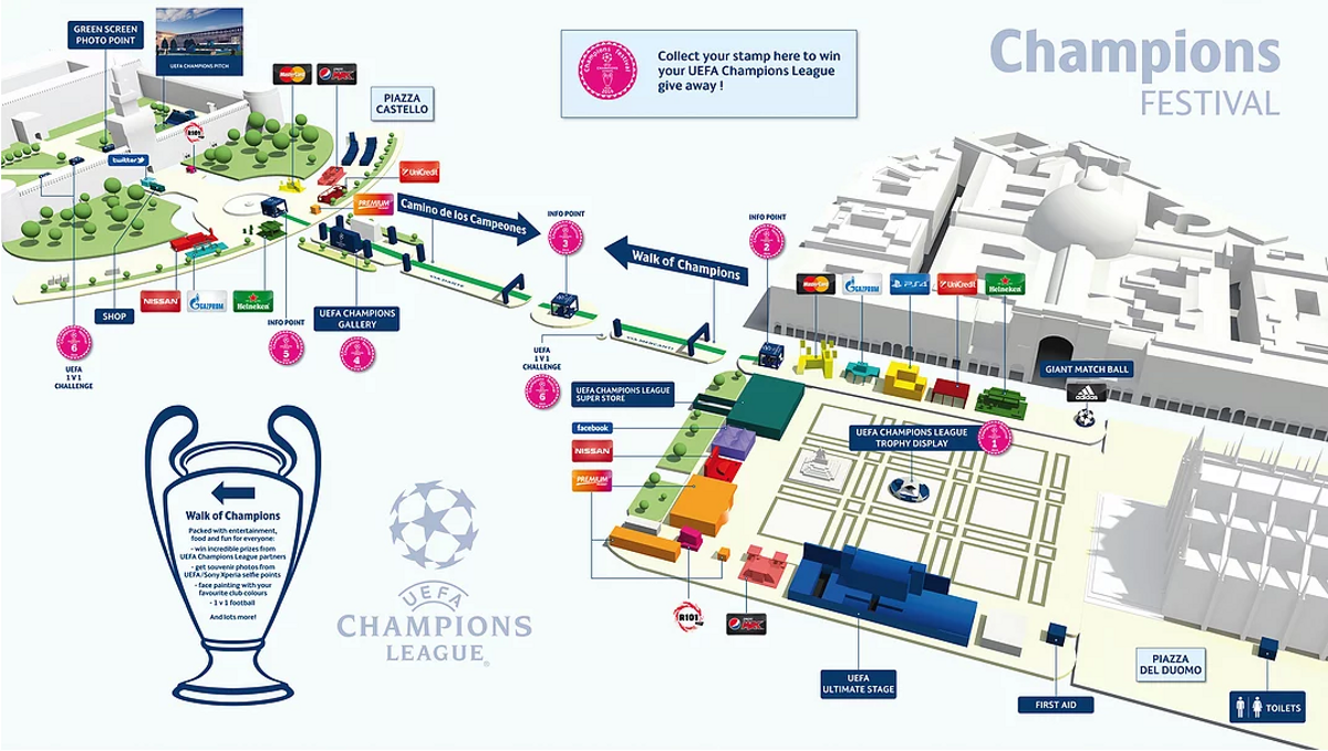 Il Champions Festival si terrà nelle vicinanze di Piazza del Duomo, nel cuore di Milano, con esibizioni come quelle di Benny Benassi e Gaizka Mendieta e una sfida 'Ultimate Champions' - che per la prima volta vedrà in campo anche calciatrici - tra gli appuntamenti da non perdere nell'ambito di un ricco programma di musica, calcio e divertimento su grande schermo per tifosi delle due squadre in finale e per i locali.